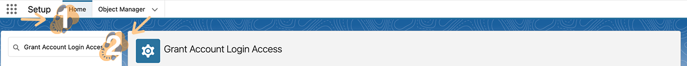 1.2 On the “Home” tab, search “Grant Account Login Access” and click on the corresponding search result. ↵