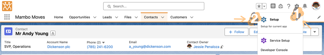 2.1 Head over to your org’s setup “Gear” icon and select “Setup”.