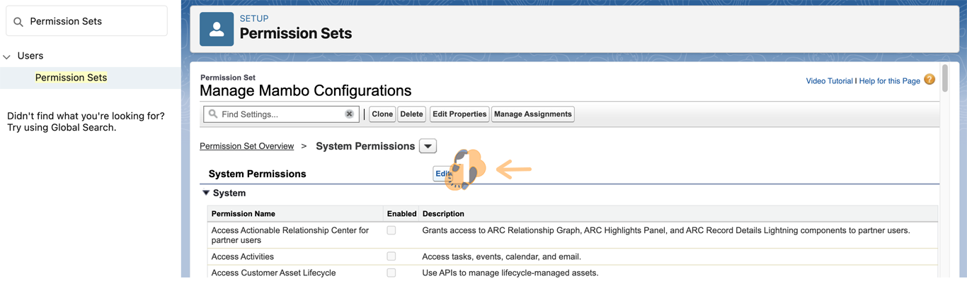 3.2 On the next screen click on “Edit” to begin defining what permissions will be included within this Permission Set.