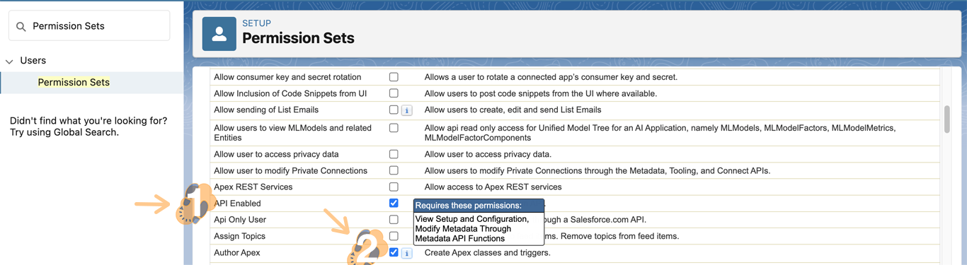 3.3 Start by checking off “API Enabled” and “Author Apex”.