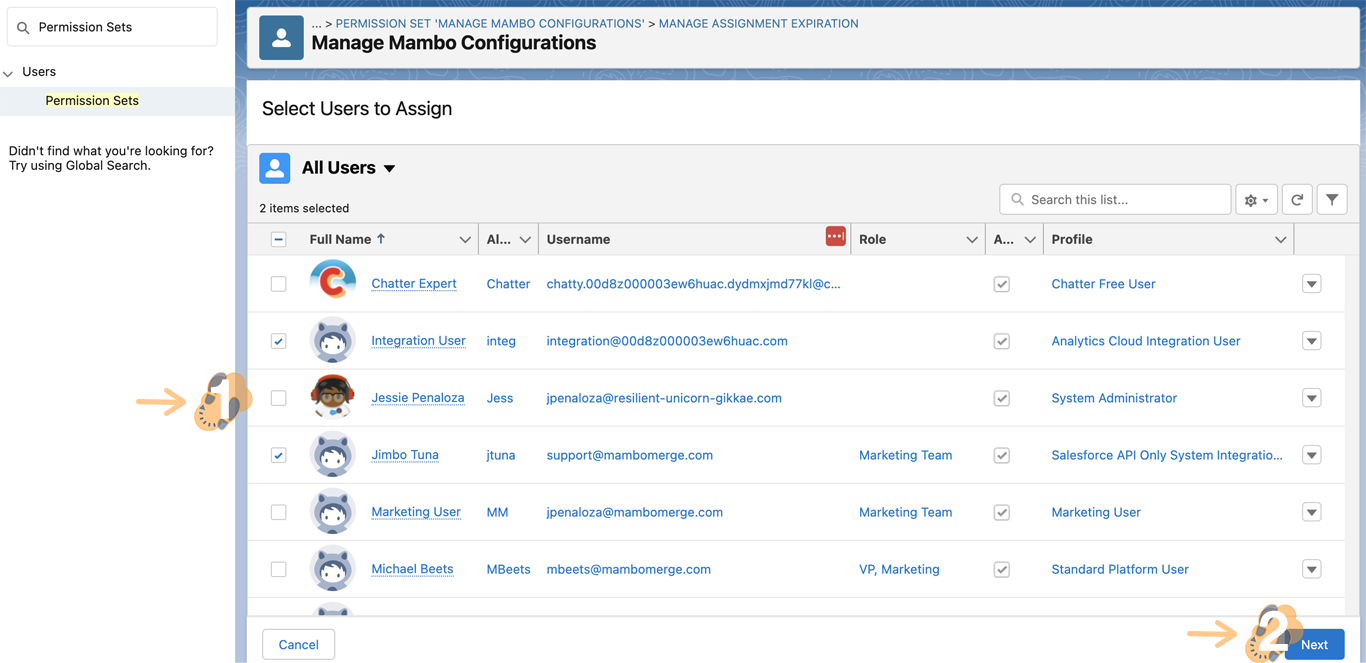 4.3 Select the user(s) to assign this Permission Set and click “Next”.