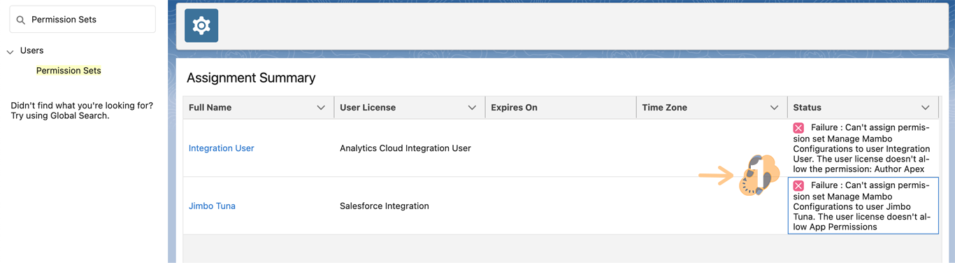 4.5 At times you may see “errors” populate after trying to assign a user with this Permission Set. Make sure field-level security or license types aren’t preventing you from assigning to select users.