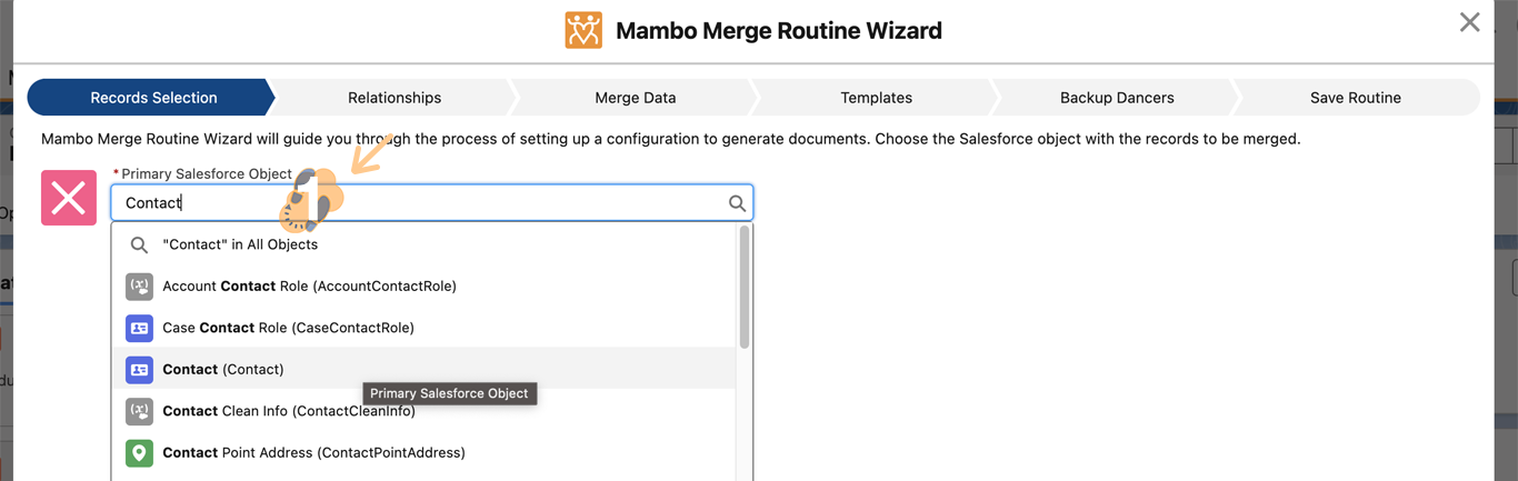 2.4 Select the “Primary Salesforce Object” you want to build the template around.