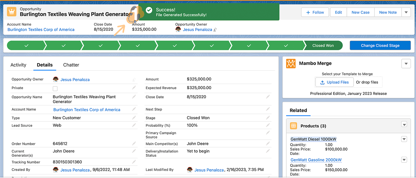 4.2 The merged document will then automatically download to your computer and notify you if it was successful. Proceed to check the document to make sure the correct data was merged.