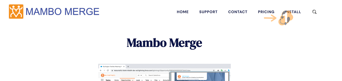 1.1 Go visit our site at www.mambomerge.com and click the “INSTALL” link from the navigation menu on the top-right side of the homepage.