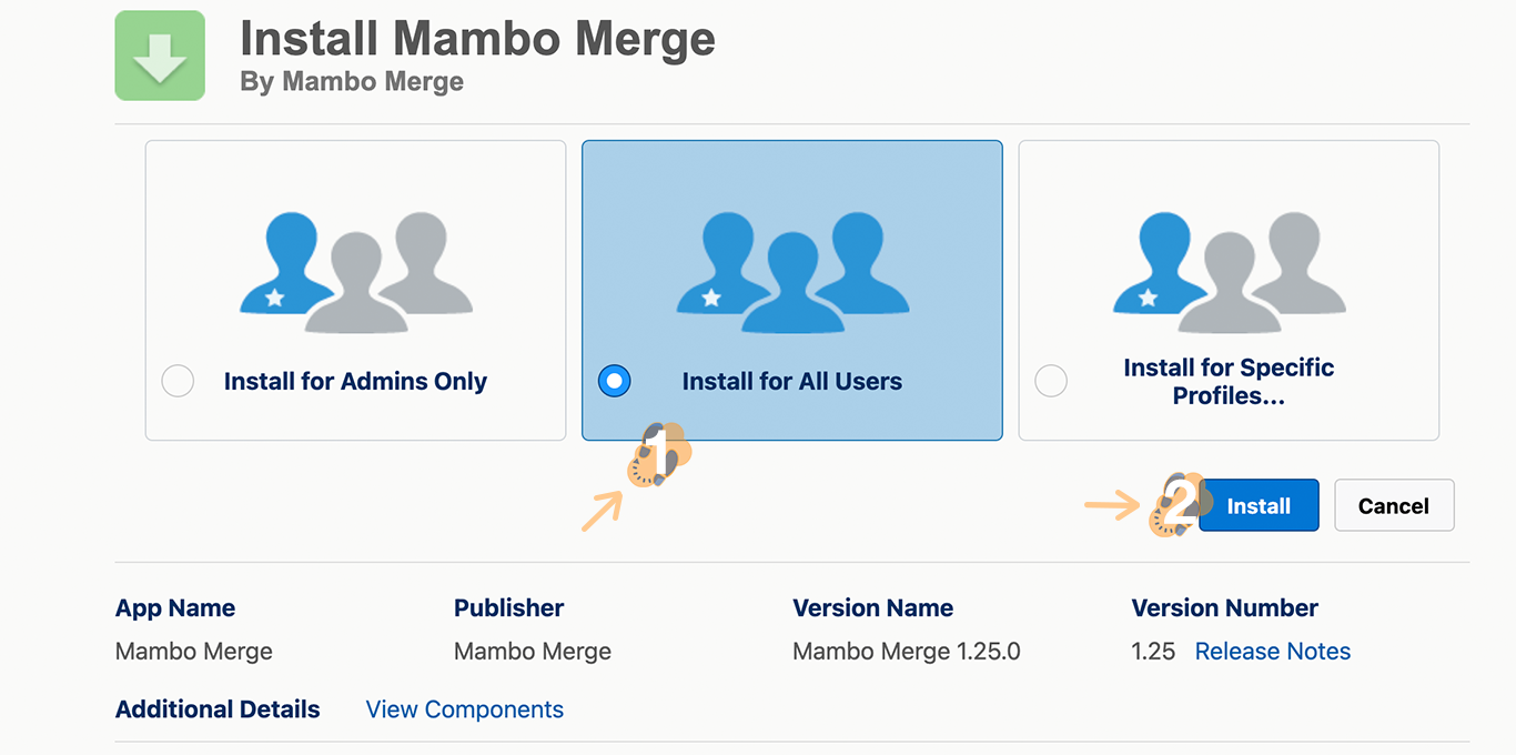 4.1 Choose from the following “Admins Only”, “All Users”, or “Specific Profiles”. Click the “Install” button to proceed.