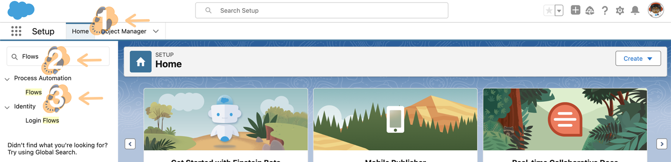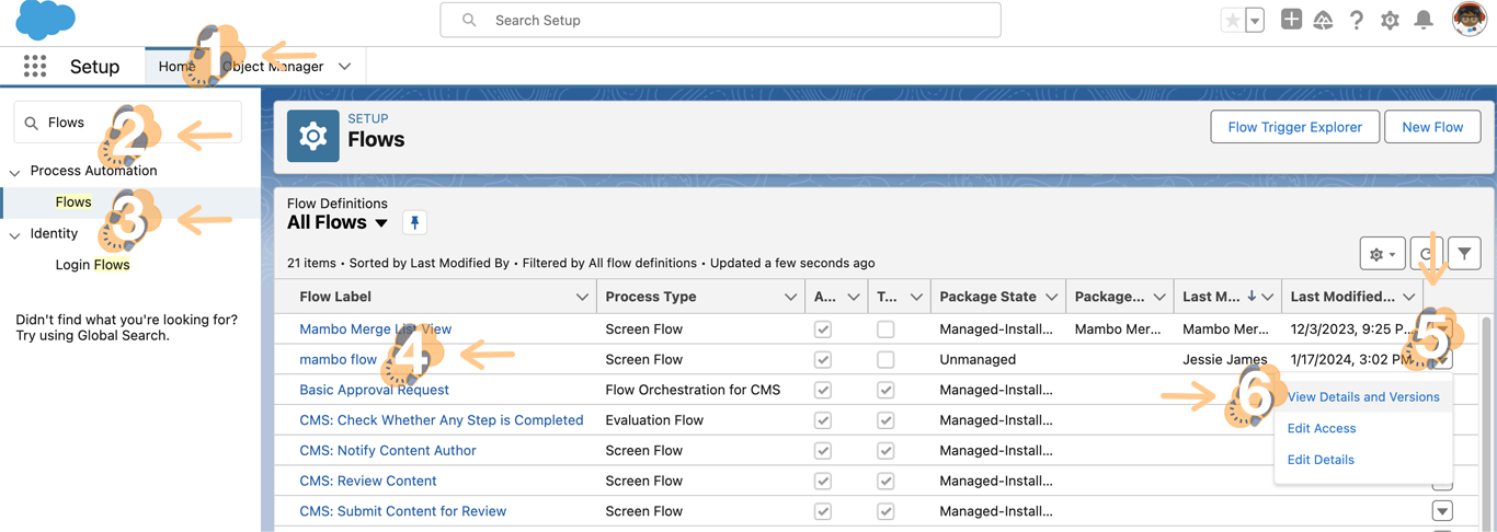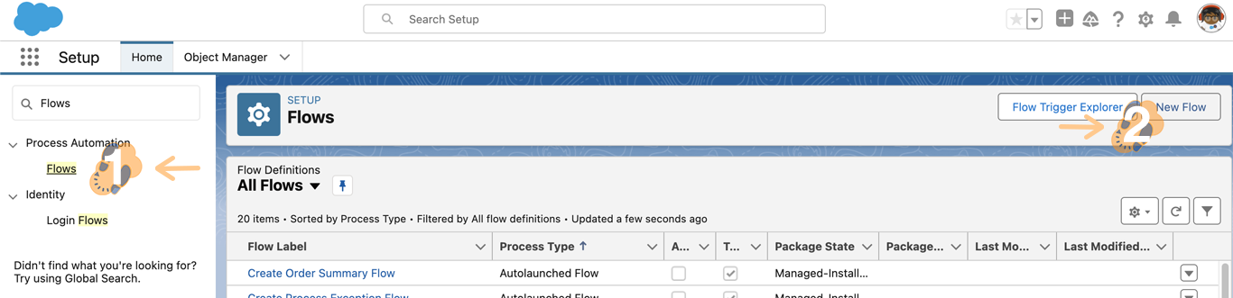 3.1 From your org navigate to “Home” and search for “Flows.”