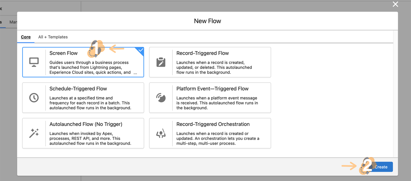 3.3 Use the wizard, choose “Screen Flow” and click on “Create.”