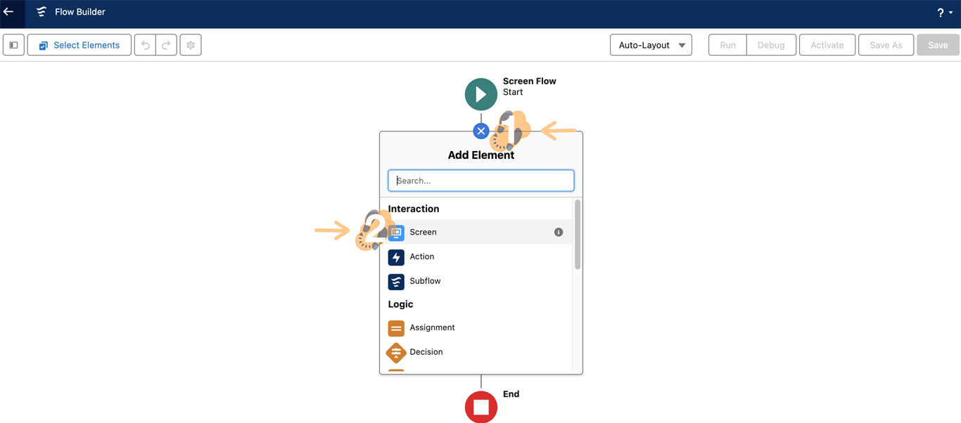 3.4 Click on the "+" option and choose the “Screen Element” from the drop down.