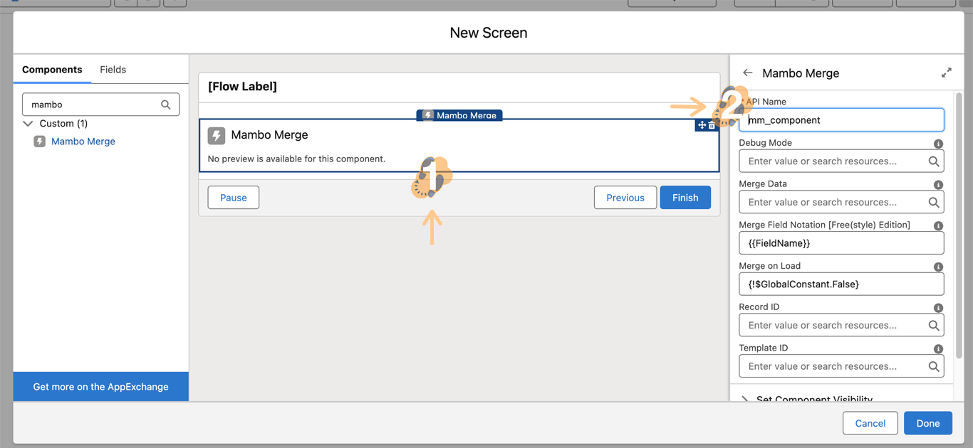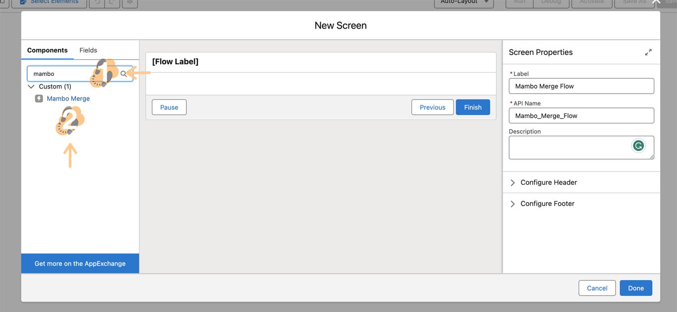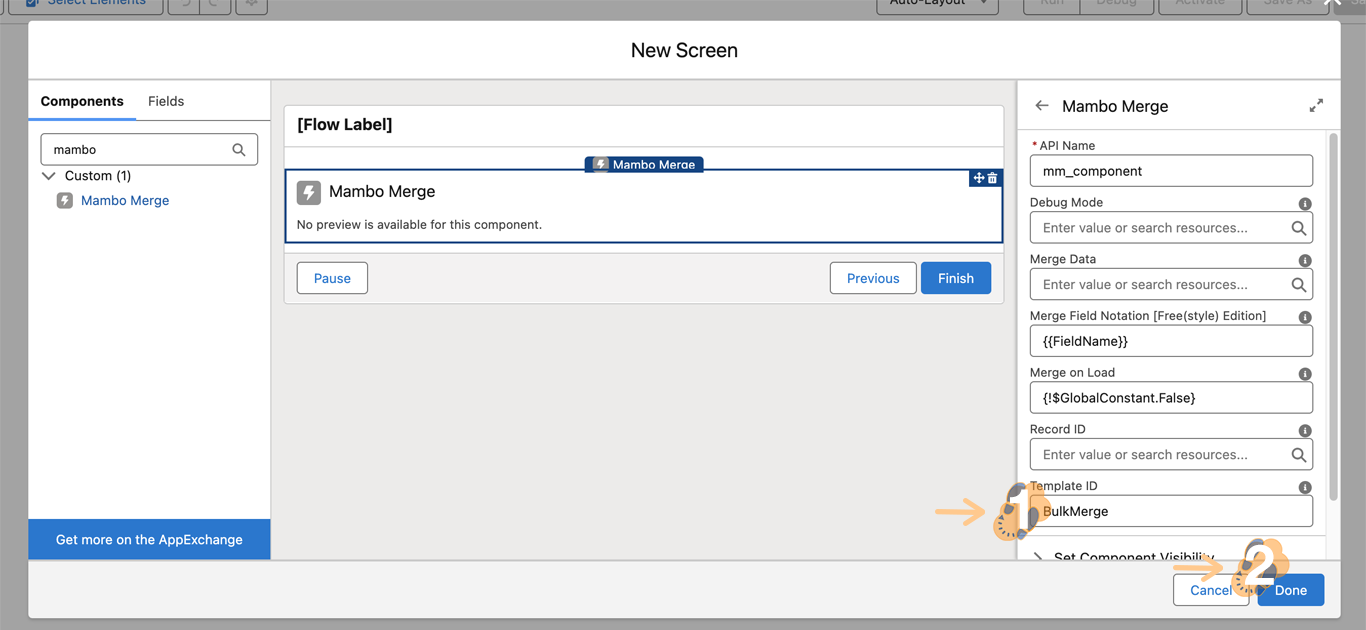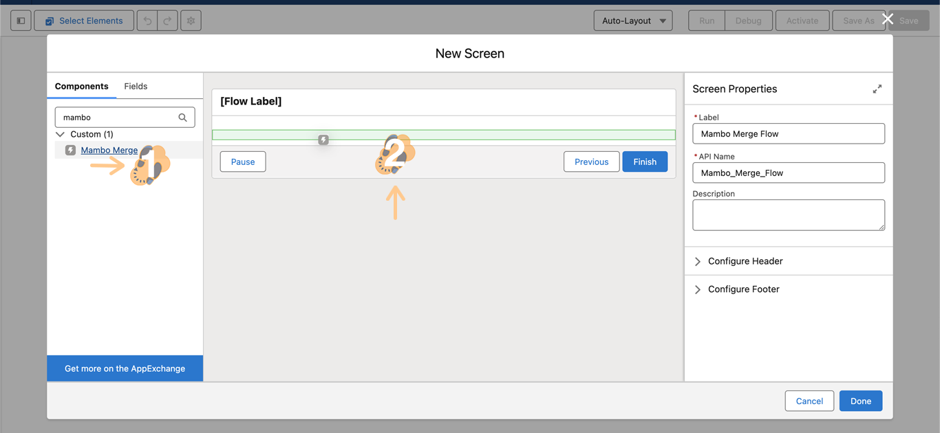 Use these step-by-step instructions to create a Mambo Merge button within Salesforce, using Flows. This is a great option for either a “Records Where” & “From Report” Routines. By following these steps, users will be able to easily navigate through the setup process and create a custom button that allows them to merge multiple records with a Mambo Merge Component, not on the record page.