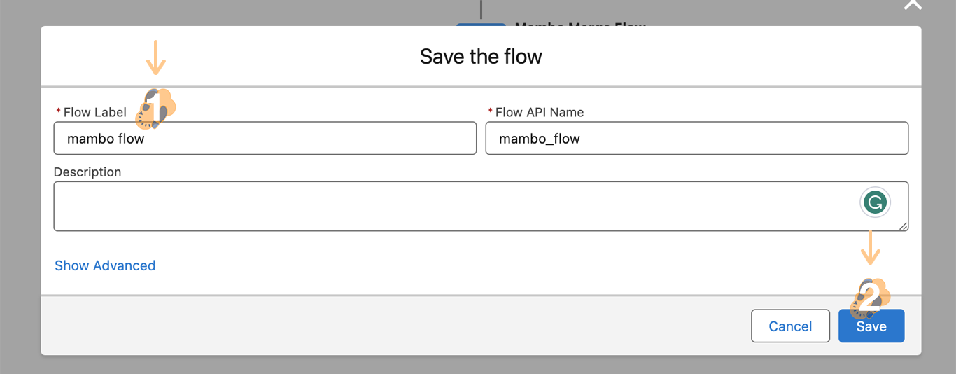 3.11 Label your Flow and press “Save” to proceed. For our example, we used “mambo flow.”