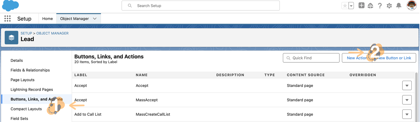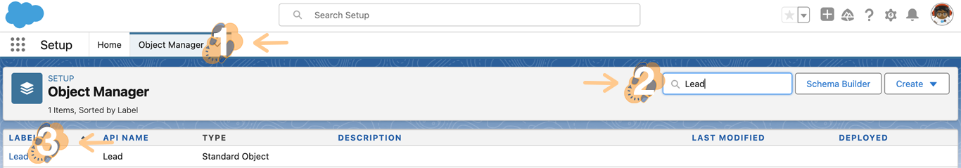 4.1 Let’s head back to the “Object Manager” to search for our Object. In our example, we are looking for the “Lead” Object. Once confirmed, click on the search result.