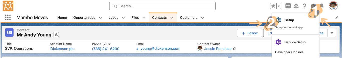1.1 Locate your org id by going to your org’s homepage, click on the “Gear” icon, and select “Setup” from the dropdown list. ↵