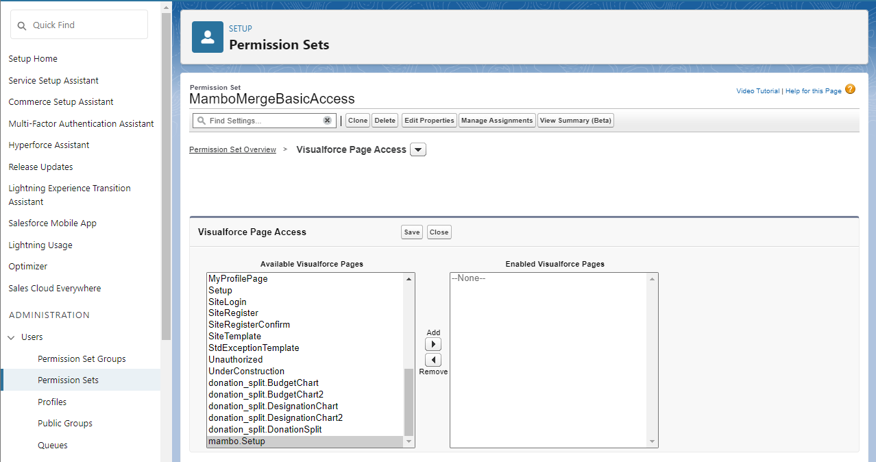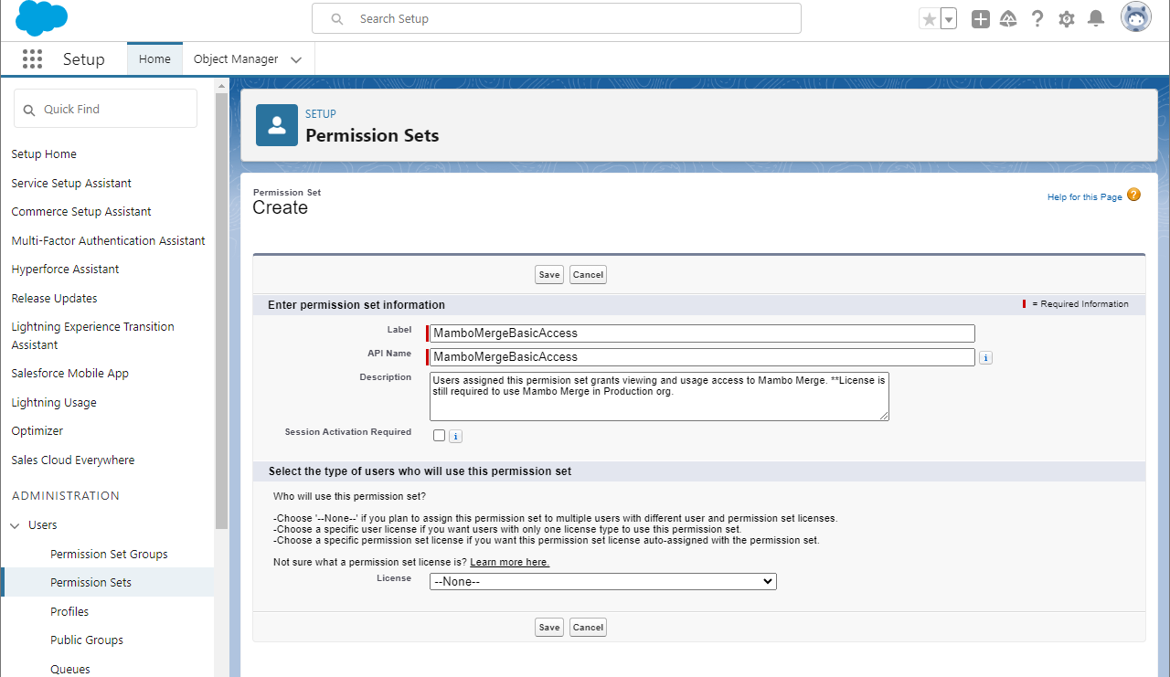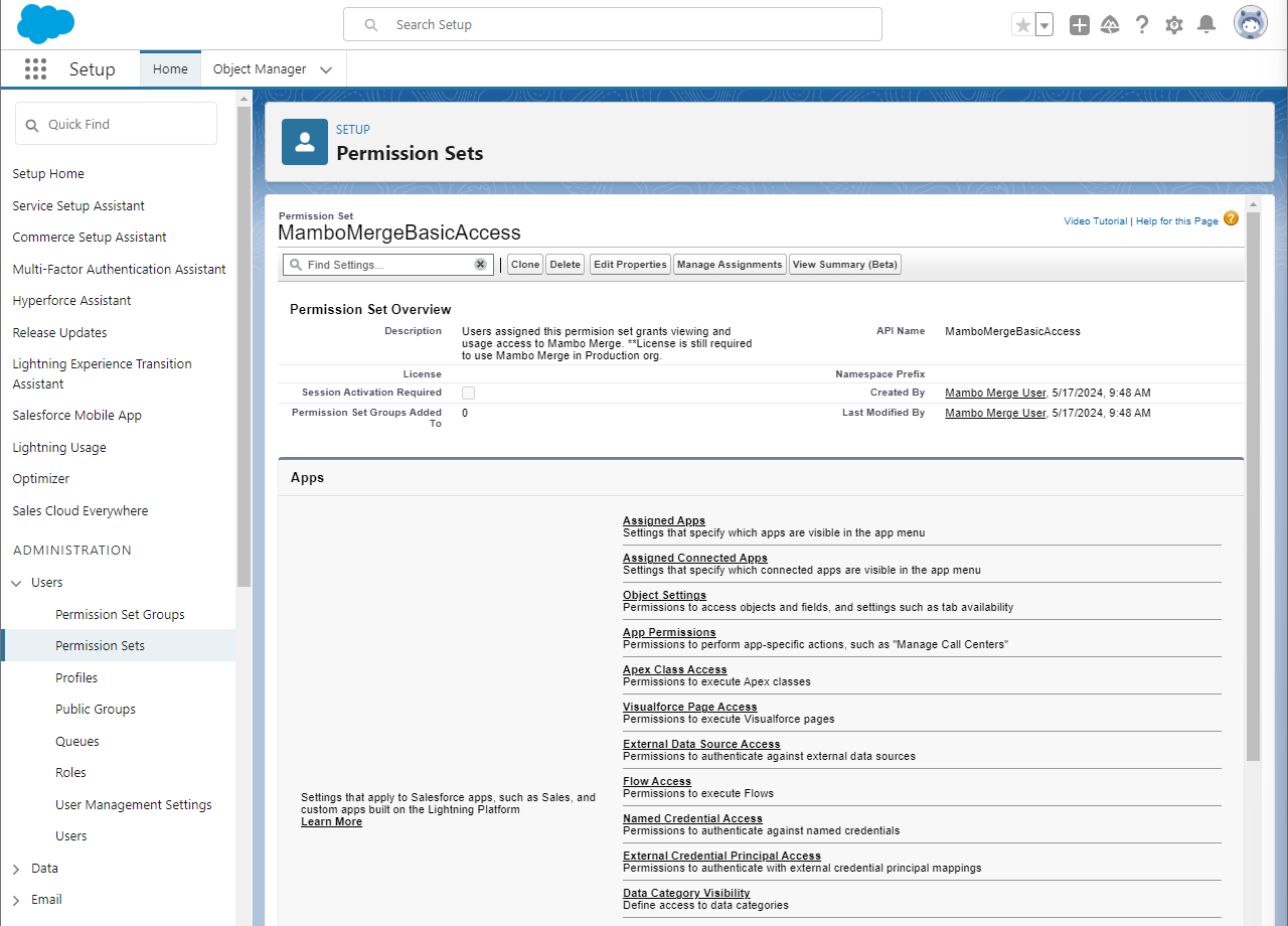 Admins will need to assist with the next following steps. Ensure caution when authorizing permissions to users in Salesforce, as granting inappropriate access can compromise data security and integrity. With that said, the permission sets shared here are to give Users access to the Mambo Merge component and be able to use a Mambo Merge license.