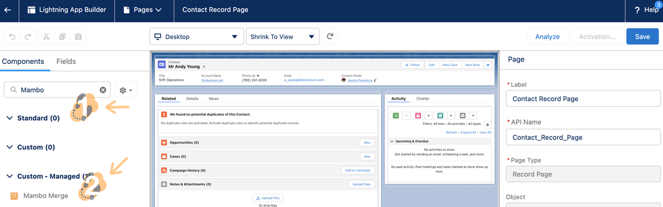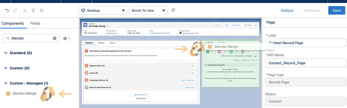 Mambo Merge is a Lightning Web Component that you can add to any record page. You can even add multiple components to one page.