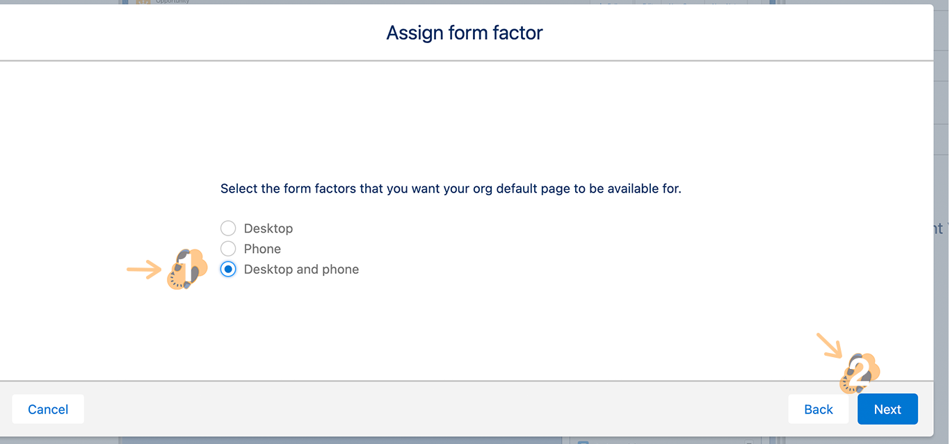1.8 The next window will let you assign access to this component on either a desktop, mobile, or both. We recommend that you provide access to both. Select “Desktop and phone” then click Next.