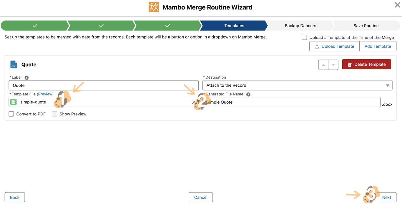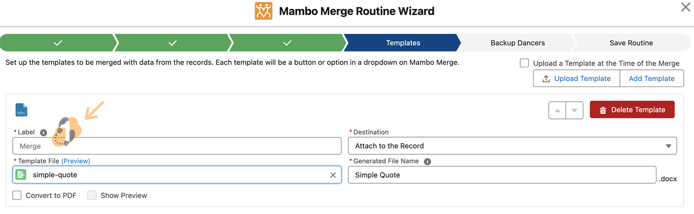 - “Upload a Template for Each Merge” checkbox