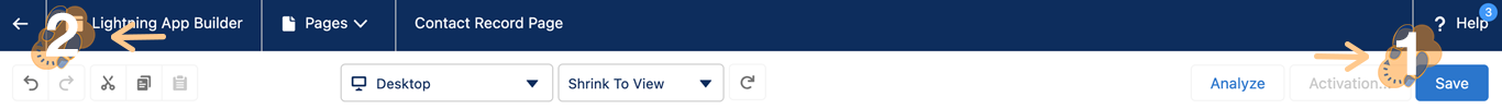 Note: The Save button can be found in the top right-hand corner while the Back Arrow will be located in the top left-hand corner of the lightning page.
