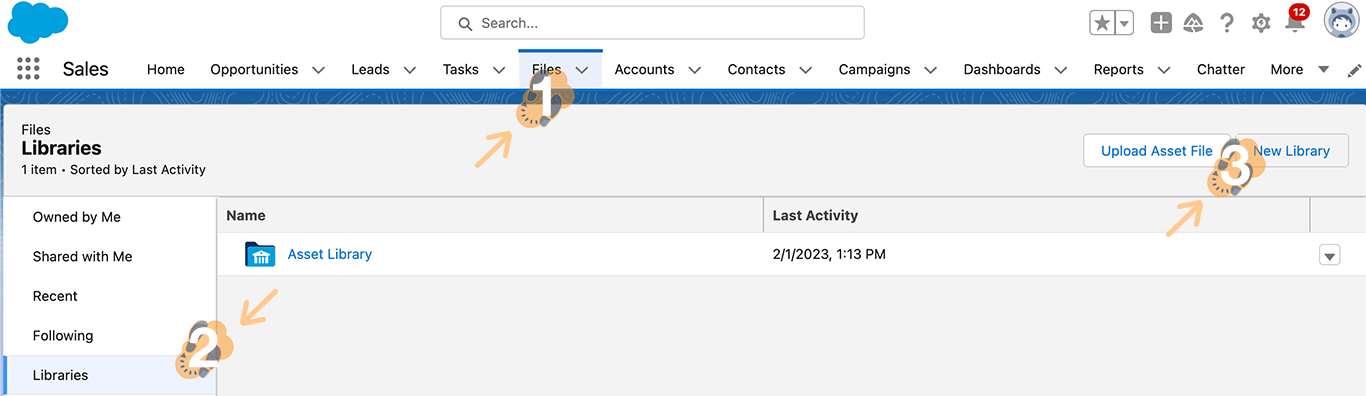 1.1 Go to your org and select the “FILES” tab, click on “Libraries”, and press the “New Library” button.