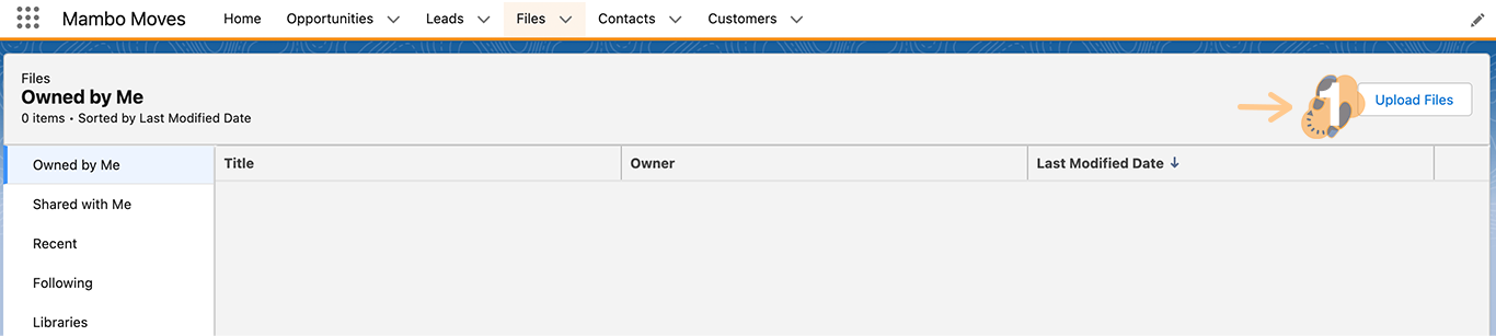 2.1 Start by heading over to your “FILES” tab and click on the “Upload Files” button.