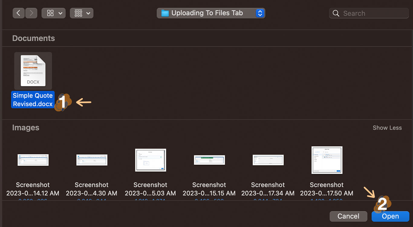 3.3 Select the file you wish to use to replace the existing one. Then click “Open”.