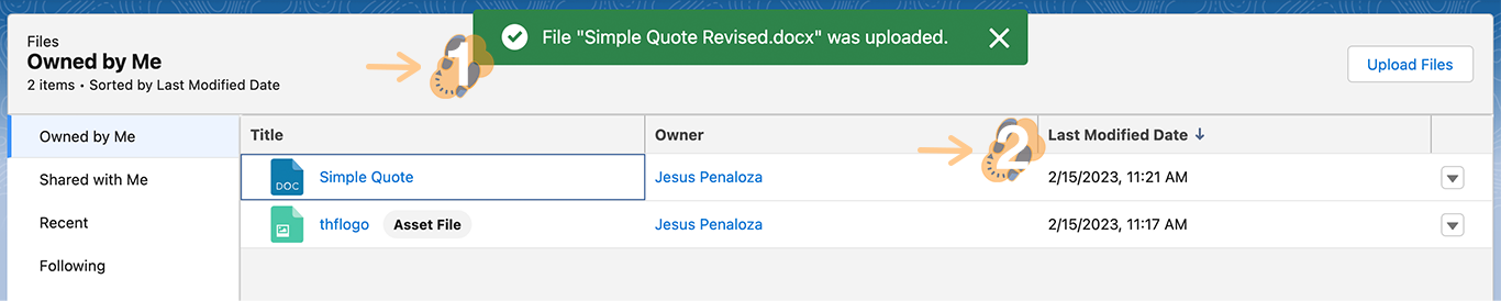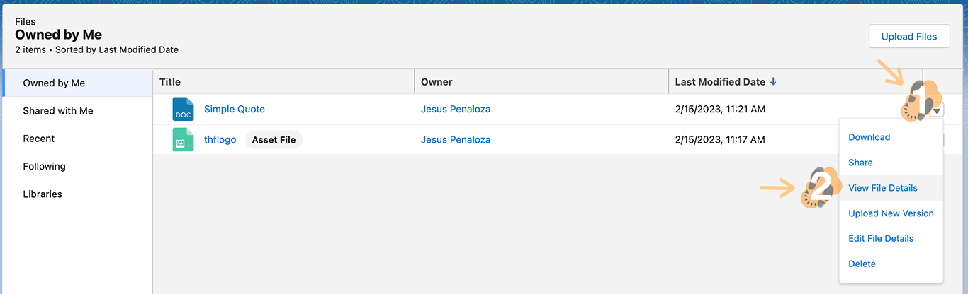 Note: Uploading the same file name within an existing one in your FILES tab will not replace it but rather create a second document with a different file ID. If you want to replace an existing document you’ll need to use Upload New Version to completely replace it.
